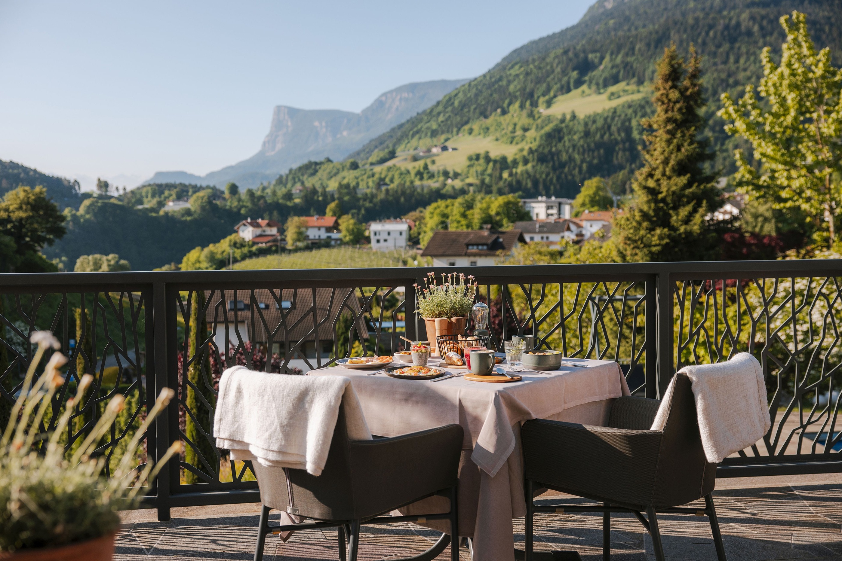 Völlan, ein sonnenverwöhnter Ort oberhalb von Lana und südlich von Meran, liegt eingebettet zwischen Wiesen und Obstgärten im Völlaner Mittelgebirge. Genau hier befindet sich das Hotel Der Waldhof²: ruhig gelegen, naturnah – und zugleich ein idealer Ausgangspunkt, um Meran, das Etschtal und die umliegenden Berge zu entdecken. Direkt am Haus beginnt der hauseigene Waldpark – ein Stück Natur, das sofort entschleunigt. Zwischen alten Bäumen und dem einzigartigen Biotop wird aus einem Spaziergang schnell ein Innehalten. Momente, die in Erinnerung bleiben, entstehen im beheizten Infinitypool mit Mayenburg-Panorama, während rund ums Hotel sonnige Plätze zum Lesen und Entspannen einladen.