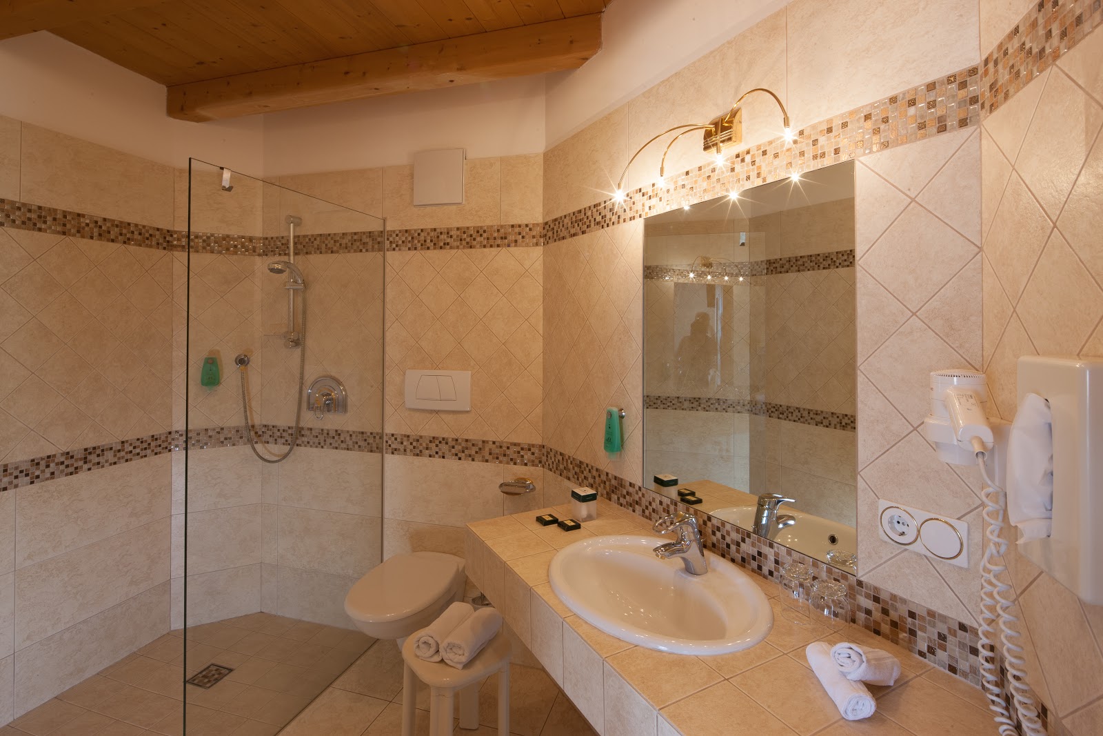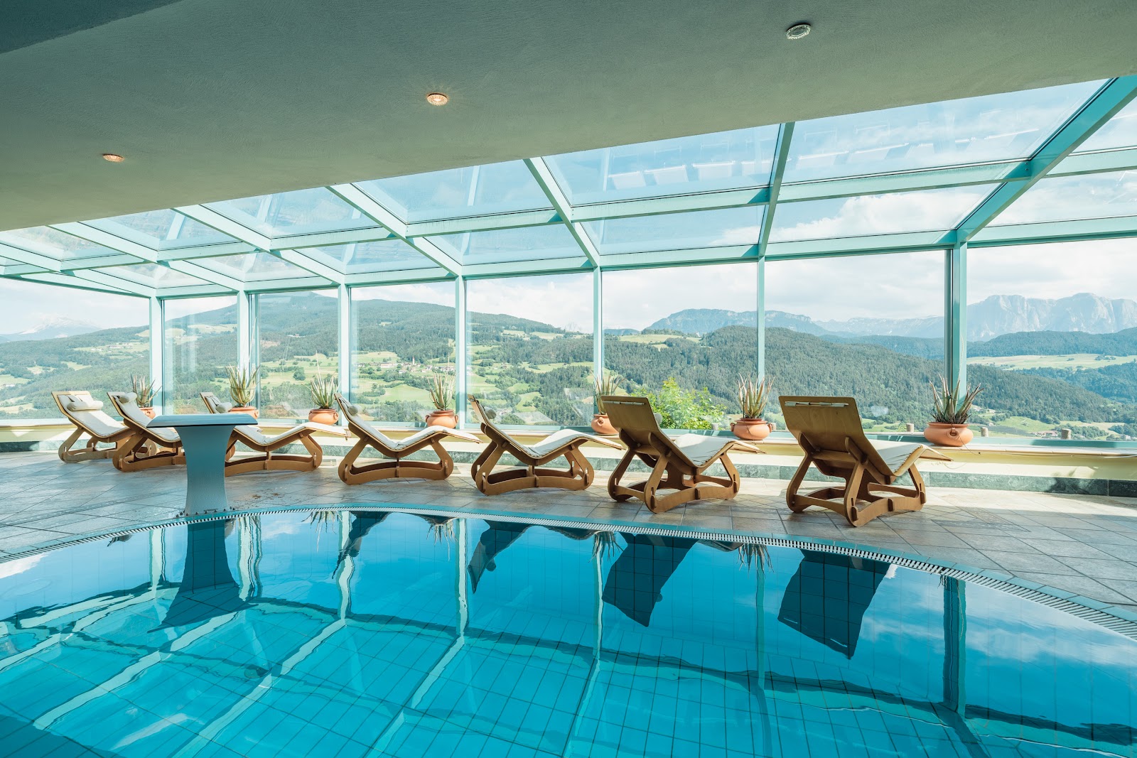 Zum Wellnessbereich des Hotels gehören ein Hallenbad mit Gegenstromanlage und integriertem Whirlpool. Im erfrischenden, solargeheizten Freibad können Sie ihre Bahnen mit Blick auf die Dolomiten absolvieren. Ein separater Outdoor-Whirlpool, ein Kneipp-Parcours, das Sauna-Angebot und verschiedenste Massagen & Beauty-Anwendungen runden das umfangreiche Wellnessangebot ab.