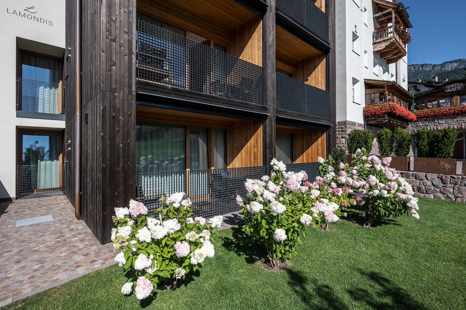 Von den Balkonen der Ferienwohnungen genießen Gäste den Ausblick auf Almwiesen und die imposanten Gebirgszüge der Dolomiten. Das weckt Lust auf aktive Urlaubstage in der Umgebung der Lamondis Private Apartments. Nach einem erlebnisreichen Urlaubstag können Sie am Abend im kleinen Wellnessbereich abschalten. Hier stehen Ihnen eine finnische Sauna und ein gemütlich eingerichteter Ruheraum zur Verfügung. Zum Apartmenthaus gehört außerdem ein Fahrrad- und Skischuhraum. In ihm können Sie Ihre Räder sicher unterstellen oder Ihr Wintersportequipment nach dem Einsatz zum Trocknen abstellen. Stellplätze für PKW sind ebenfalls direkt am Haus vorhanden.