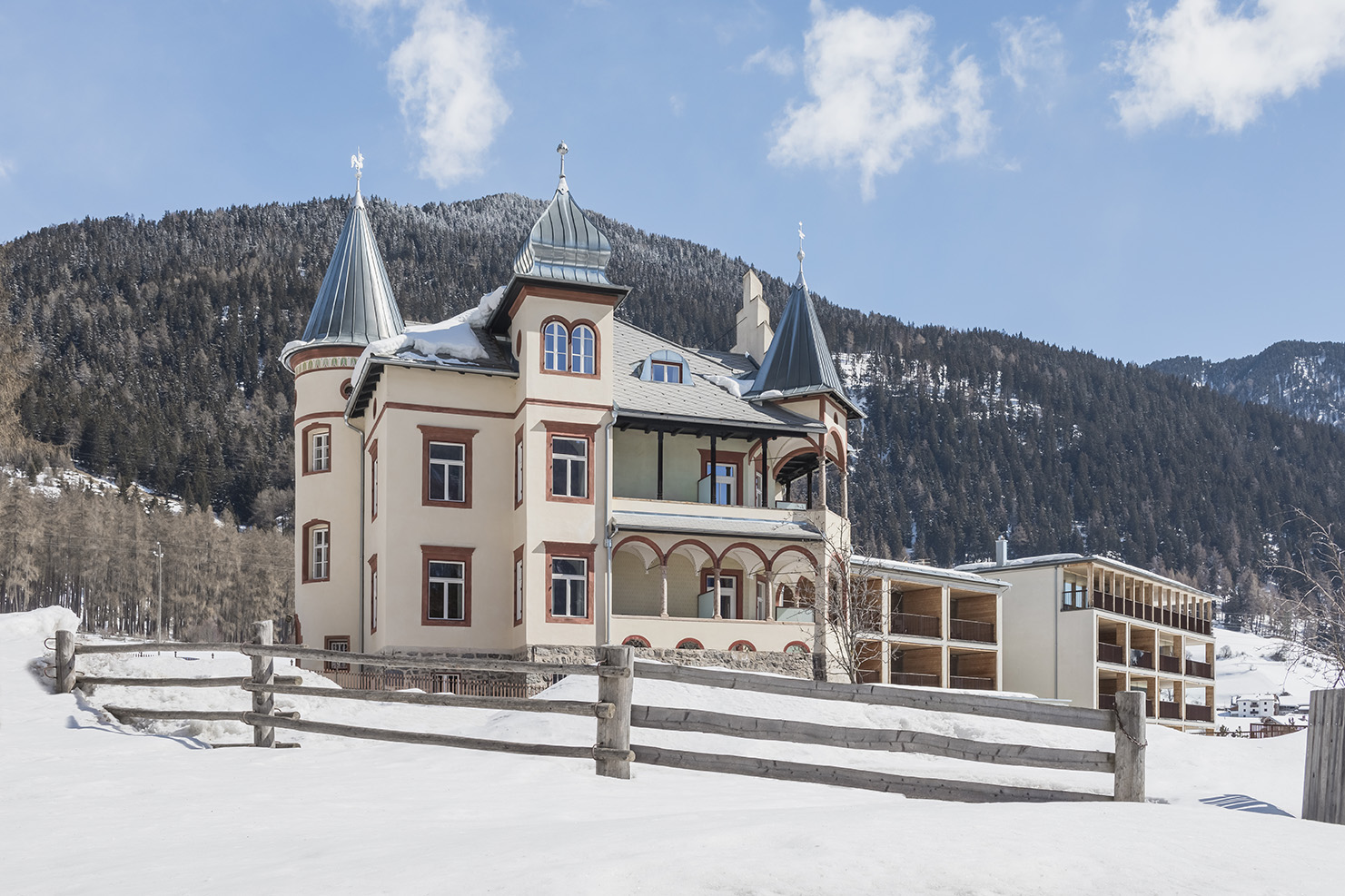 Gelegen am Rand eines Lärchenwaldes, der das zwischen Haidersee und Reschensee liegende Dorf St. Valentin auf der Haide begrenzt, bieten die Zimmer und Suiten der Villa Waldkönig herrliche Ausblicke auf den Haidersee vor der Kulisse des Ortlermassivs. In dieser Jugendstilvilla wird Ihnen die Möglichkeit geboten, einen mit abwechslungsreichen Wellnessvergnügen angereicherten Aktivurlaub zu erleben. Im Sommer lädt Sie die Seenlandschaft am Reschenpass zu ihrer Erkundung und zu Badespaß und Wassersport ein, finden hier zahlreiche Sportveranstaltungen statt und erwartet Sie als Biker ein wahres Eldorado. Der Winter stehen dagegen Eislaufen und Winterwandern sowie das Vergnügen auf den Pisten im Skigebiet Schöneben-Haideralm ganz vorn auf der Beliebtheitsskala sportlicher Aktivitäten.