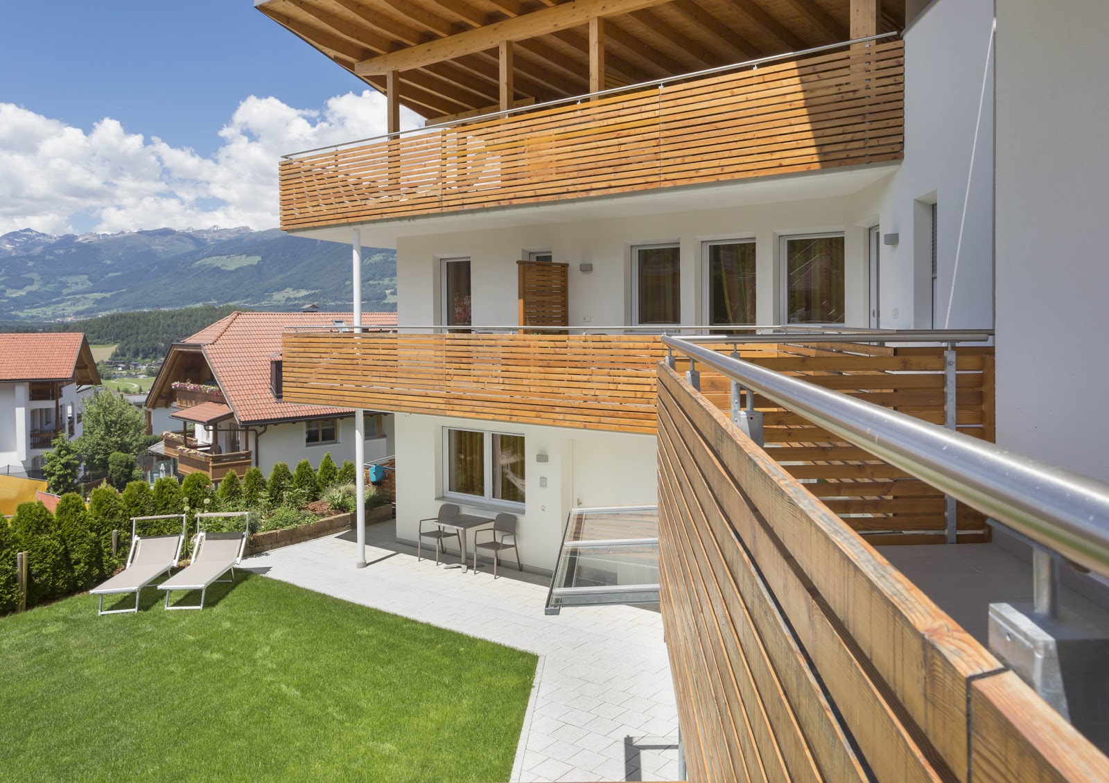 Nur etwa 300 Meter vom Zentrum in Reischach entfernt befindet sich das außen und innen modern und stilvoll gestaltete Appartementhaus Andreas. In ihm warten vier Ferienwohnungen von 50 bis 70 Quadratmeter Größe auf jeweils zwei bis fünf Personen. Als Feriengäste stehen ihnen komplett eingerichtet Zimmer mit Küche und Bad sowie Balkon und/oder Dachterrasse zur Verfügung. Auf kurzen Wegen können sie Einkäufe in einer Bäckerei und anderen Geschäften erledigen oder Restaurants und Cafés besuchen. Außerdem bieten sich die benachbarte historische Altstadt von Bruneck und das im Schloss untergebrachte Messner Mountain Museum Ripa für einen Stadtbummel, beziehungsweise für einen interessant verlaufenden Museumsbesuch an.