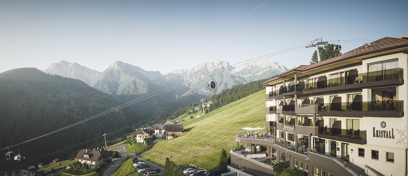 Inmitten des malerischen Pustertals im Ort Olang befindet sich das Hotel Kristall. Die modernen Zimmer und Suiten verbinden ein elegantes Design mit dem klassischen alpinen Einrichtungsstil. Zu den besonderen Annehmlichkeiten während Ihres Aufenthalts gehören ein Wellnessbereich, ein eigenes Gourmetrestaurant und die wunderschöne Landschaft mit ihrem großen Freizeitangebot.