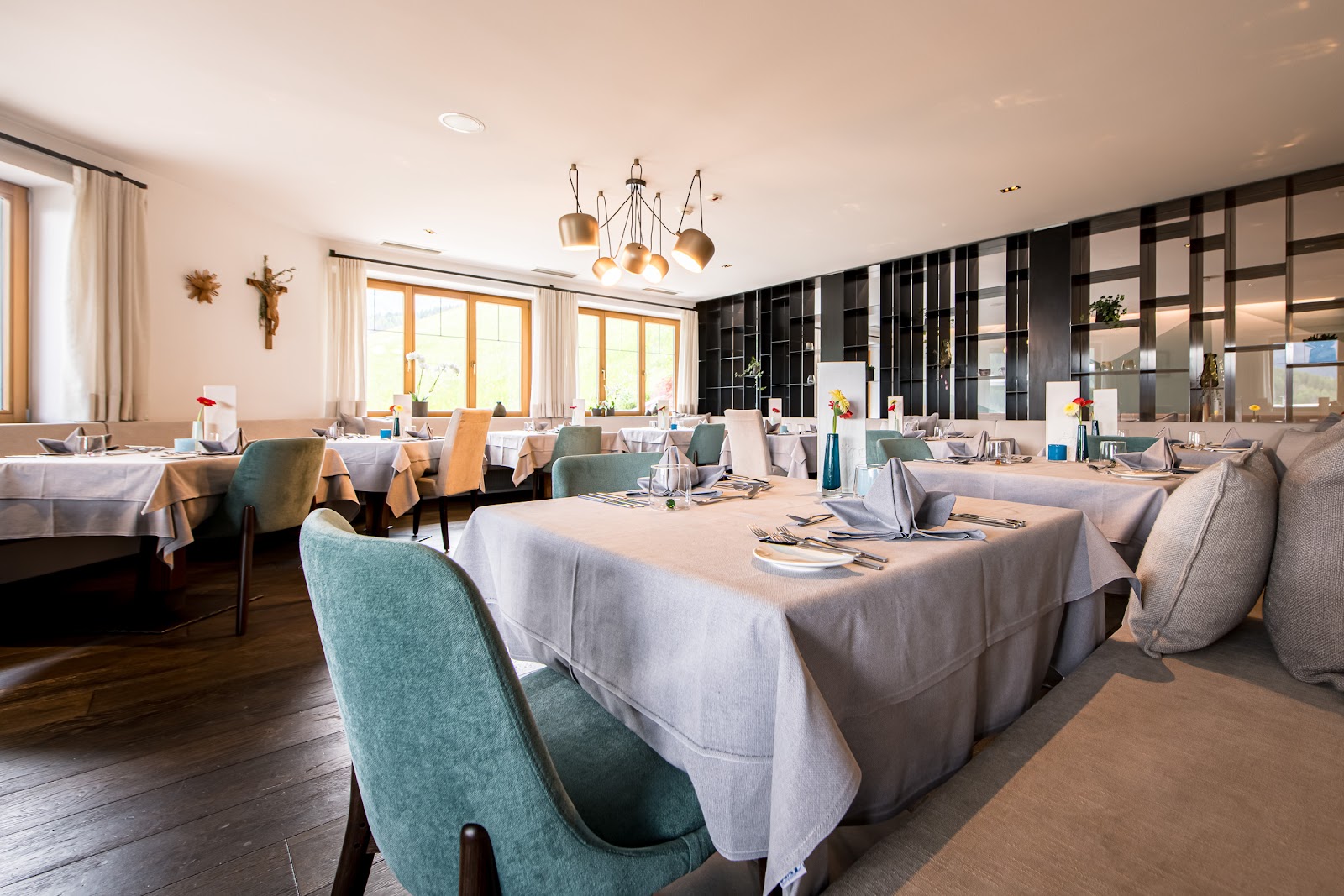 Zum Hotel Kristall gehört ein eigenes Gourmetrestaurant mit einer exzellenten Speisekarte aus der Feder des Spitzenkochs Karl Kofler. Er kombiniert auf immer neue Weise italienische und regionale Klassiker und präsentiert sie den Gästen des Restaurants im neuen Gewand. Dabei kommen zahlreiche frische Kräuter aus dem hauseigenen Kräutergarten zum Einsatz und verleihen den Speisen ihr besonderes Aroma. Neben der allgemeinen Speisekarte gibt es ausgewählte Themenabende, bei denen sich die Gäste auf kulinarische Entdeckungsreise begeben.