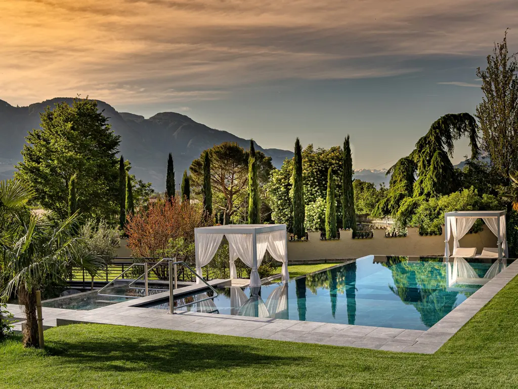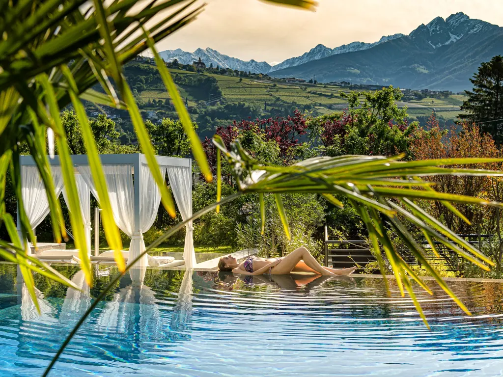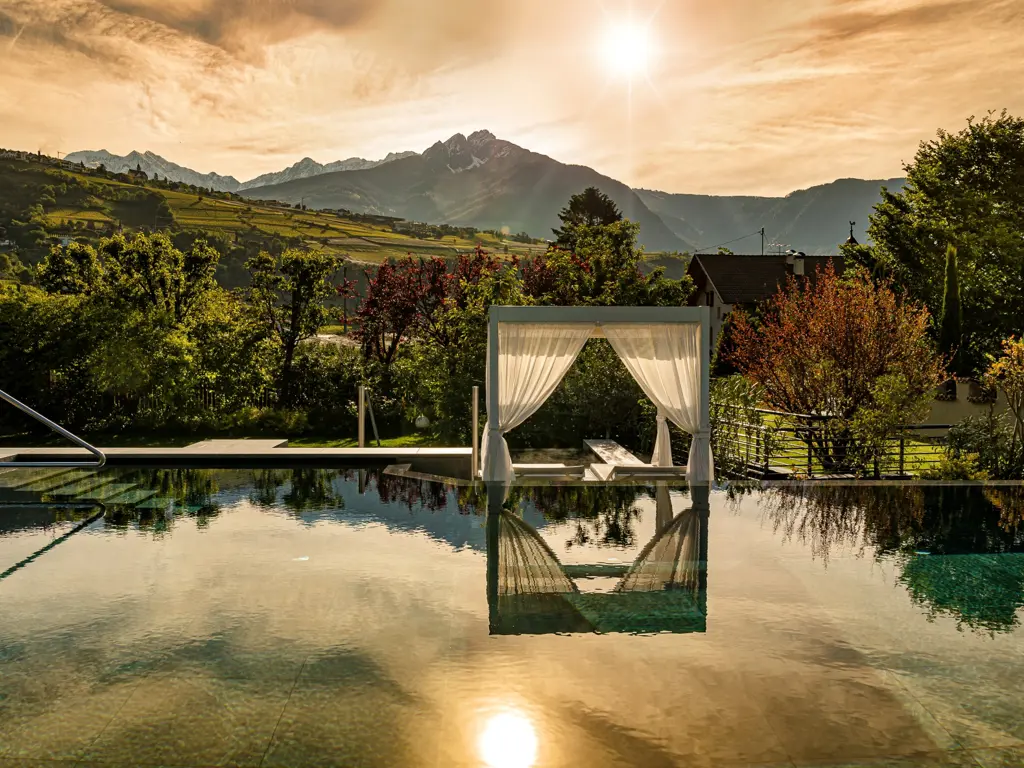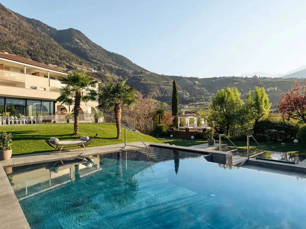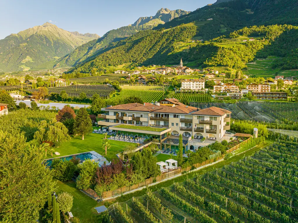 Willkommen im FAYN garden retreat hotel in Algund – einem besonderen Rückzugsort im Meraner Land, wo mediterranes Lebensgefühl auf alpine Weite trifft. Umgeben von Obstgärten und in ruhiger Panoramalage eröffnet sich ein beeindruckender Blick auf die Texelgruppe. Die charmante Kurstadt Meran mit ihren Lauben, Promenaden und saisonalen Märkten erreichen Sie in wenigen Minuten. Direkt vor der Haustür laden der Algunder Waalweg und der Tappeinerweg zu entspannten Spaziergängen mit herrlichen Ausblicken ein.