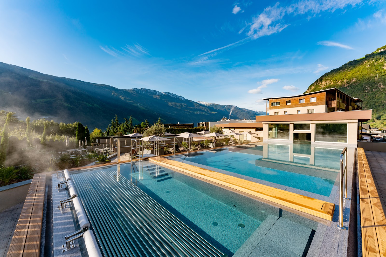 In ruhiger Lage zwischen dem Naturparks Texelgruppe und den Apfelgärten am Ortsrand von Rabland bei Meran befindet sich das Hotel Waldhof in einer idyllischen Ecke des Vinschgaus. Die verschiedenen Doppelzimmer und Suiten des 4-Sterne-Hotels sind in freundlichen Farben und mit natürlichen Materialien eingerichtet und sorgen für einen rundum gelungenen Urlaub.
