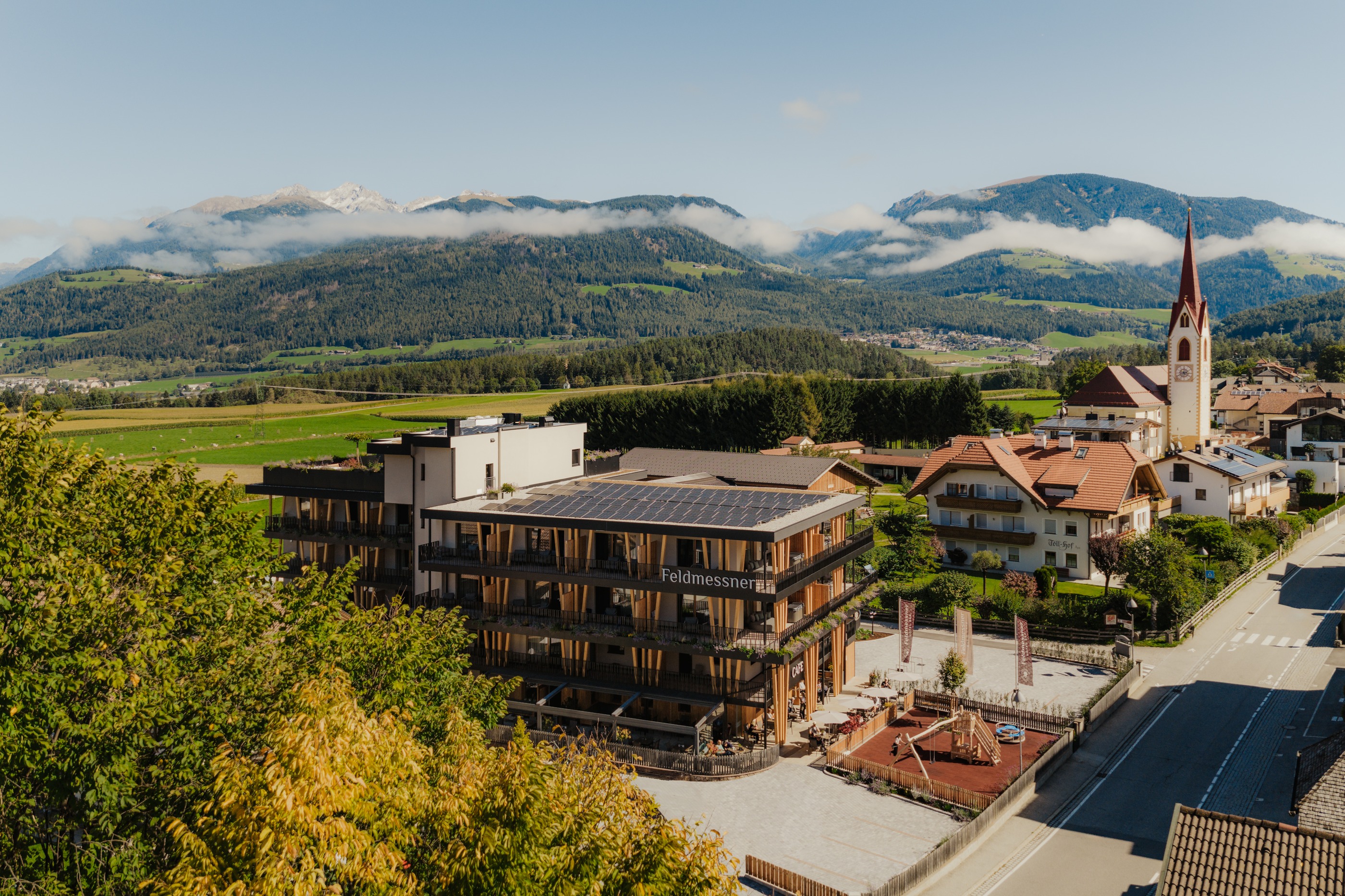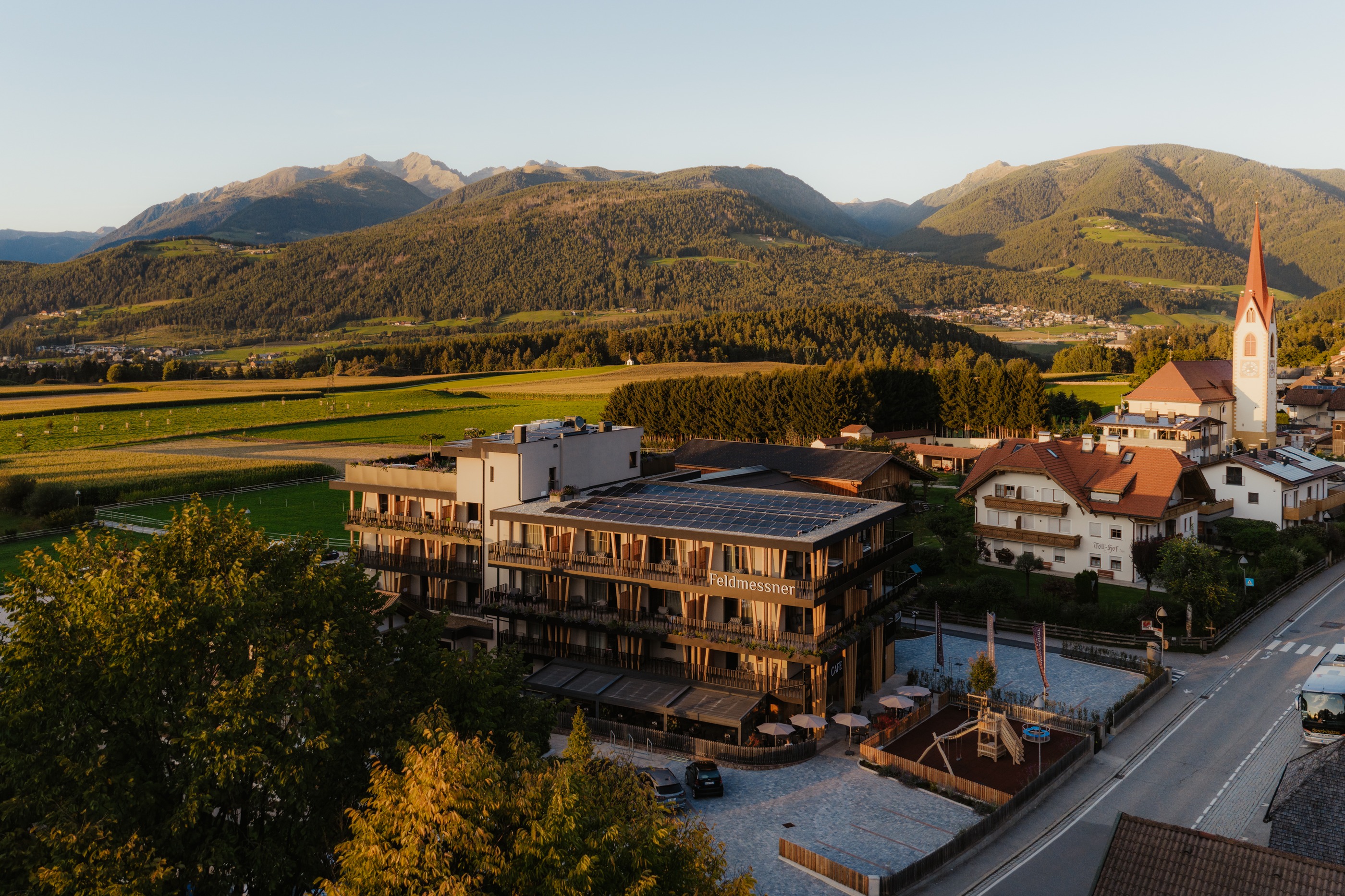 Das Hotel Feldmessner ist ein 3-Sterne-Hotel im Herzen von Reischach und direkt an der Aufstiegsanlage, die Sie während der Ferien auf den legendären Kronplatz bringt. Gleichzeitig ist die Gemeinde Bruneck im Zentrum des Pustertals nicht weit entfernt und bietet viele Freizeiteinrichtungen, Gastronomie und Sehenswürdigkeiten. Diese lassen sich ideal bei einem Tagesausflug vom Hotel Feldmessner aus erkunden.